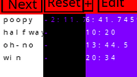 there is a new pause button, icons for next, reset, reset+ and pause and also when you pass the time too far the window actually becomes bigger instead of zooming in negatives now work and thats it...